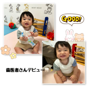 ちょっぴり涙も出たけれど、おもちゃや歯ブラシ等にも興味津々で、ニコニコで過ごしてくれましたね💕